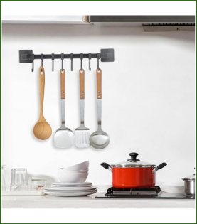 Barra adhesiva con ganchos para utensilios