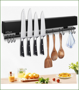 Barra magnética con ganchos para utensilios