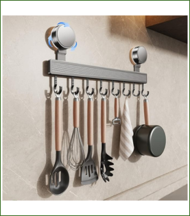 Barra ventosa con ganchos para utensilios