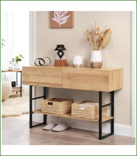 Una consola con cajones en el recibidor es perfecta para quienes valoran la organización sin renunciar al diseño. Su estructura práctica permite guardar objetos pequeños y mantener la superficie libre de desorden.