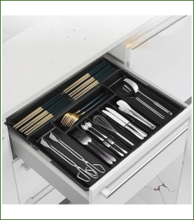Las bandejas ajustables para cubiertos optimizan el espacio y mantienen la higiene y el orden de los utensilios más utilizados en la cocina.
