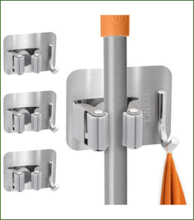 Los ganchos adhesivos diseñados para escobas y fregonas permiten mantener las herramientas de limpieza ordenadas y lejos del suelo, evitando tropiezos y desorden visual.