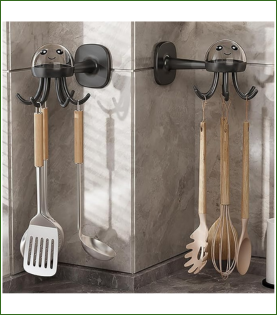 Los ganchos giratorios adhesivos ofrecen accesibilidad total y mejor organización, ideales para cocinas pequeñas o para quienes buscan soluciones prácticas y móviles.