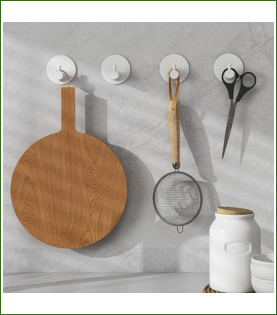 Los ganchos de ventosa son una solución temporal y flexible que permite reorganizar la cocina sin comprometer las superficies, perfectos para cambios frecuentes.