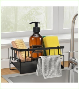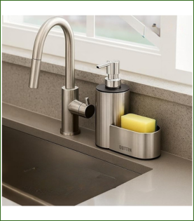 Todo en un mismo lugar: Incluyen espacio para jabón, esponja y estropajo, evitando la dispersión de objetos en la encimera.